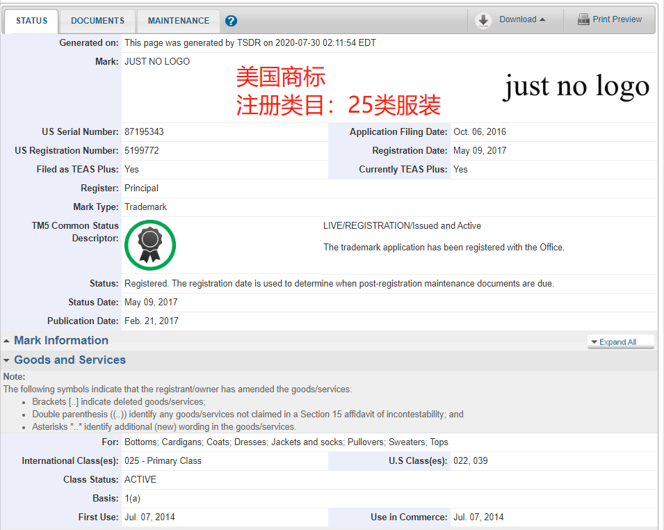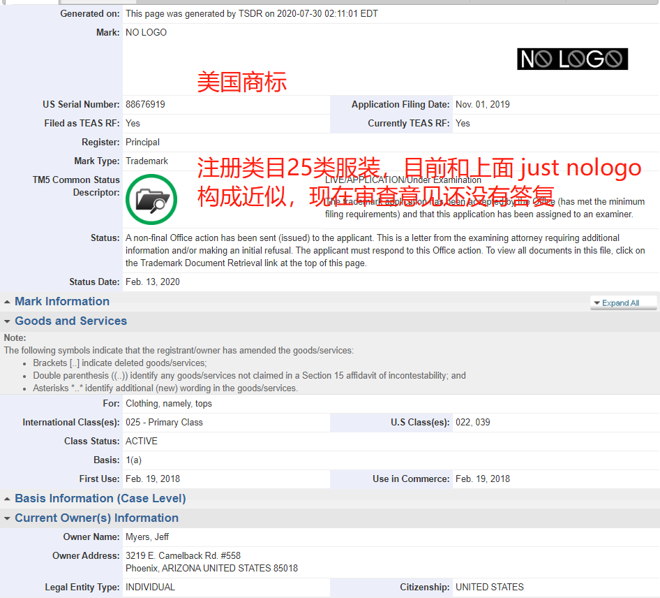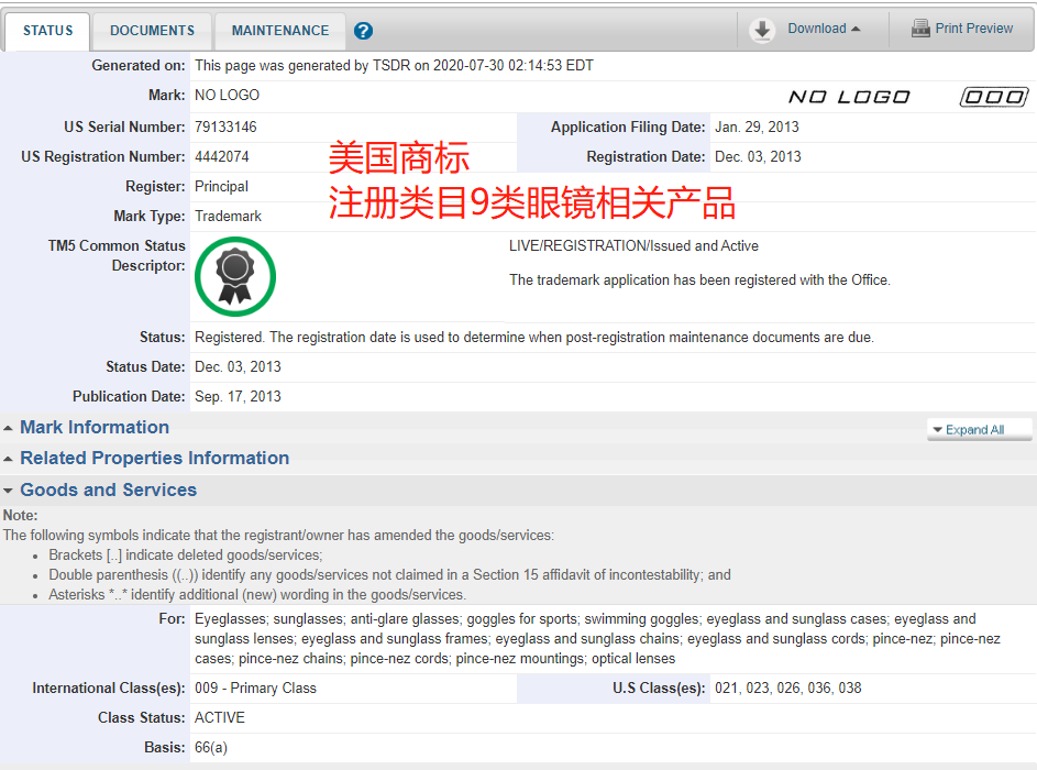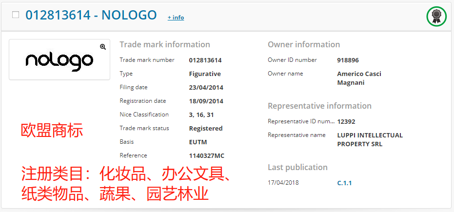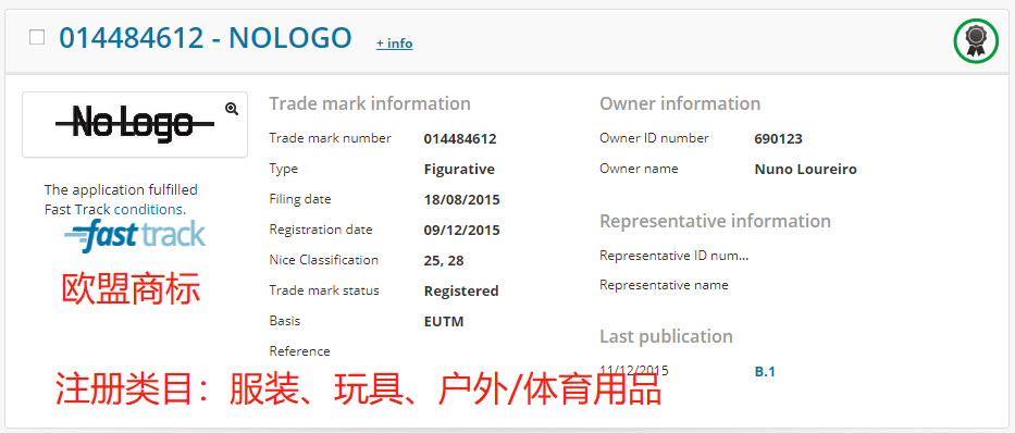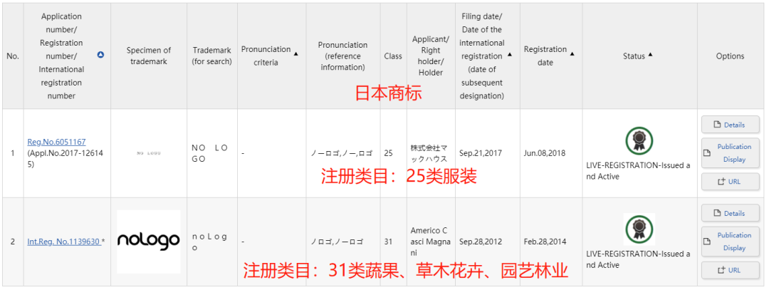 先不说其他,还是先看看nologo商标在美国、欧盟、日本注册情况吧: