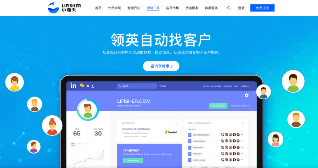这里向外贸人推荐小渔夫营销自动化工具:领英自动找客户,它拥有六大核心功能,真正实现LinkedIn找客户营销自动化,贯穿从发现到培育客户的整个过程。提升出海企业在领英平台的获客能力与效率,精细量化营销ROI,主动出击,帮企业争取更多的销售机会。