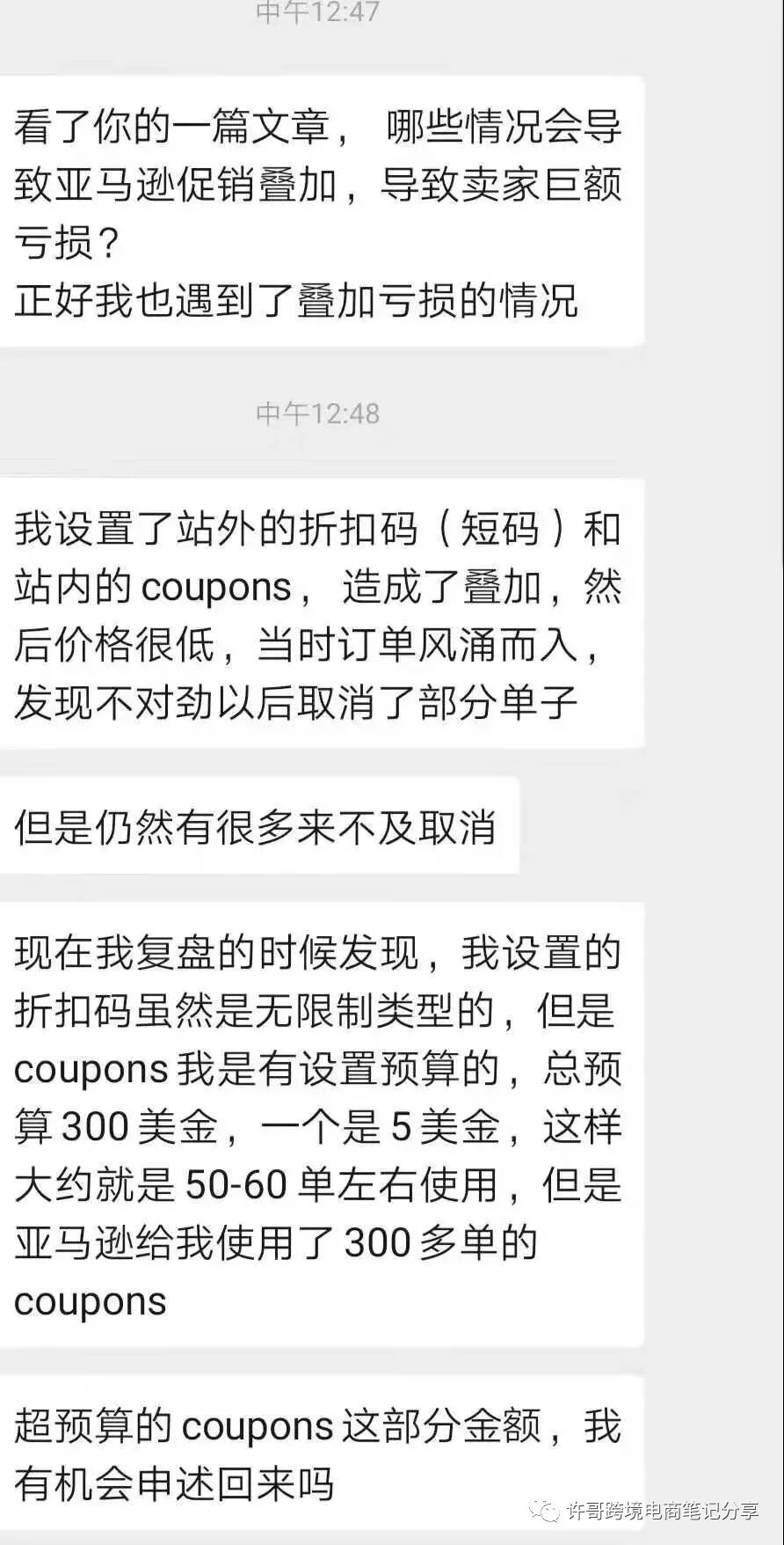 什么是Coupon 简单的说Coupon就是一个优惠。以前你可以从报纸的宣传页剪下一个Coupon然后去超市打折购物,那么这个也是一样的意思。 亚马逊Coupons是亚马逊营销工具的一种。以前只有亚马逊VC卖家可用,但是现在3P卖家也能够使用优惠券。 VC卖家和3P卖家都可以对其产品设置多种类型的优惠券,包括: 折扣优惠券 金额优惠券 买一送一 限时免费配送 赠品抽奖活动 社交媒体促销代码 如何去设置 Coupon coupons设置步骤: 1、登录卖家后台,在advertising下找到coupon,点击创建新的折扣(create a new coupon) 2、输入要使用的coupon产品的asin或sku进行搜索添加,最多可以添加50个asin,如果添加后想要移除,可以点击旁边的remove进行移除,设置完成后点击下一步 3、设置折扣,设置折扣时可以选择是percent off 或者money off,注意,折扣必须是30天内产品最低价格的5%-80%,选择是否限制每个用户是否只能使用一次,设定预算 4、计划,交易设置,描写coupons标题,选择发放对象(全部买家/prime会员/学生会员/妈妈会员/看过某些asins的买家/买够某些asins的买家);设置开始和结束的时间,注意开始时间可以选择在一个月之后 ,结束日期可以设置为开始日的90天之后。 5、预览、提交。完成设置当然在coupons计划的提交后,卖家们可以随时修改和取消,如果卖家没有取消,在你设定的预算用完后,产品也会随之消失。 目前Coupon的功能也在不断变化和优化,实际上这些资料是可以在网上可以搜索到的,但是突然想起了之前在卖家交流群里一个卖家反馈的问题: 关于这个Coupon 的部分,分享给我的时候,发现和我之前遇到的时候,问客服给的回答是一样的,还是没法申诉回来。 原因: Coupon的扣费规则,是使用了以后再扣费,所以即使预算设置了300美金,那么有1000个人领了,慢慢领,慢慢用的话,到滴54个人用的时候,预算就已经花完了,然后折扣码就暂停了。 但是有瞬时流量的时候,那么系统就不知道什么时候才能反映出来预算已经用完了。因为可能只有300美金预算的优惠券,但是瞬时能够有10000个人领取,然后同时300个人下单,然后这300单的出单时间,就在那么一秒的时间,系统控制不住,只能给买家都给优惠券。卖家只能多支付这些费用了。 关于这些促销叠加的问题是后话了,我们下期可以专门抽个时间讲讲。不得不说,Coupon的优势还是非常大的,我们一起来看看 Coupon的优势 Coupon在流量方面有什么优势? Coupon在转化率方面有什么优势?