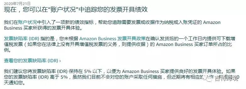 近日,不少欧洲站的卖家反映收到了亚马逊官方关于新的店铺绩效指标-—“发票缺陷率”的相关邮件,具体内容如下:
