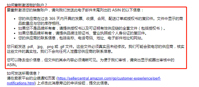 3.告知卖家如何重新激活账户,针对不同的情况,卖家需要提供哪些信息。