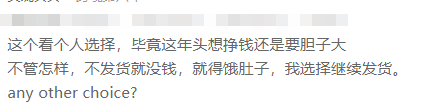 对此,卖家回复称,不发货是不可能的,毕竟要挣钱。