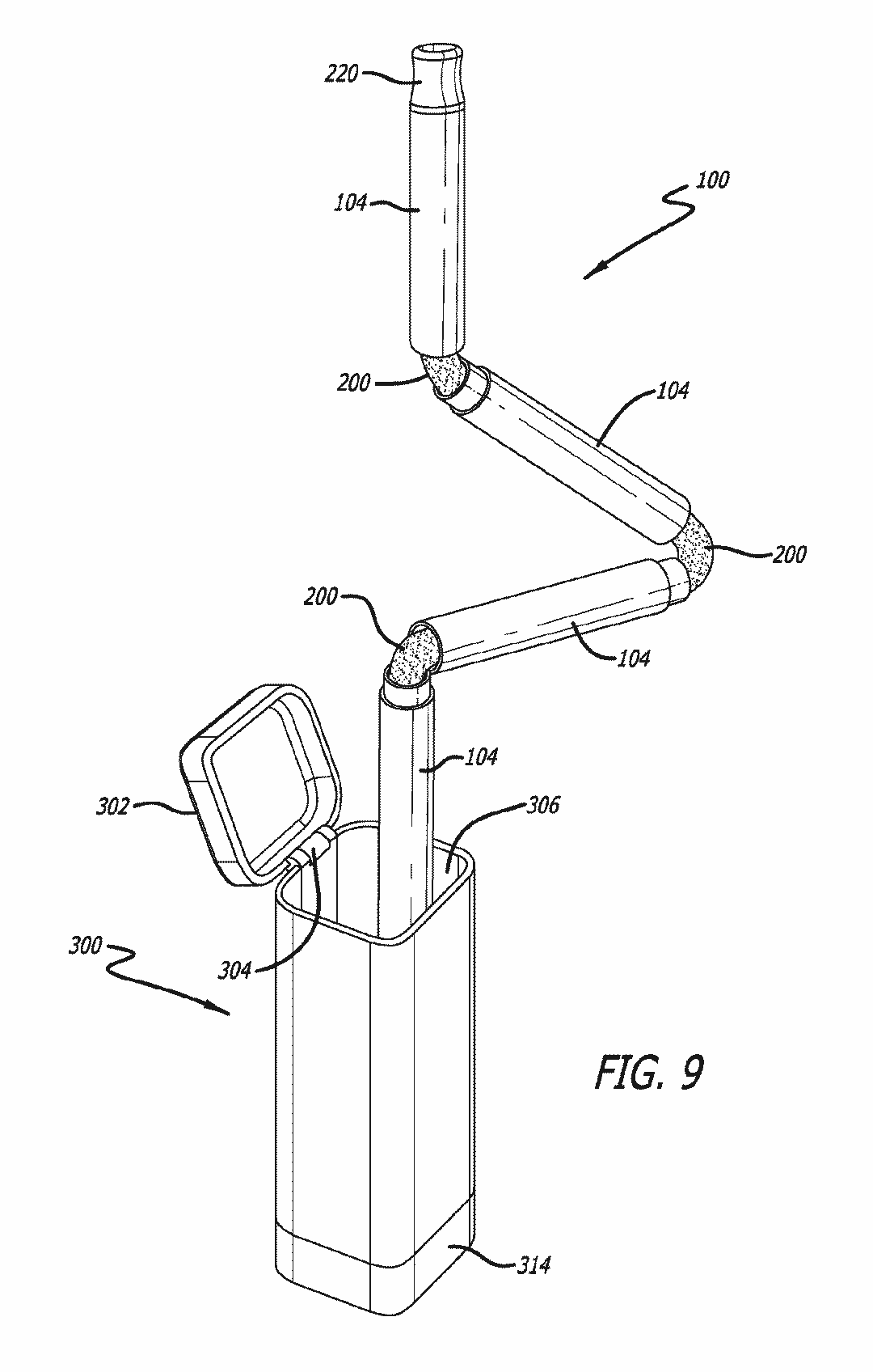 本发明提供了一种可重复使用的吸管,可折叠成紧凑的结构以用于存储,并易于在存储箱中运输。吸管包括一个刚性的外管和一个柔性的内管,可折叠成紧凑的结构以进行存储。在折叠状态下,可重复使用的吸管在使用时的长度显着减小,约为其延伸长度的一半至四分之一。吸管的外管优选地由多个刚性段形成,用于在用作饮用吸管期间以延伸的构型支撑柔性内部管。提供了一种简单的清洁装置,以在使用后清洁吸管。提供了一种存储盒,以紧凑的形式存储处于折叠状态的吸管并存储清洁装置。