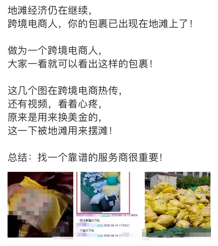 本来应该发往境外的包裹却出现了街头地摊上,卖家提供的视频中,包裹的包装未拆,甚至面单都还清晰可见,这本来有主的包裹却被扔在街头贱卖出售,不论内含什么物品,只要十三块就可以带走,这不禁让卖家们直呼心痛! 官方回应:已第一时间联合相关方取证及报警,该事件仍在进一步调查,过程中以“零容忍”的态度严厉打击、严肃处理相关违规违法行为,并全力配合有关部门调查取证。 Wish官方表示,利剑出鞘,必有回响。也呼吁广大商户朋友们理性判断,切勿被未经证实的流言所干扰。同时向广大商户朋友们征集相关事件线索(如购买记录、拍照视频等)。
