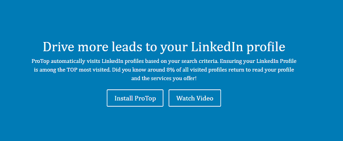 PROTOP 设置条件自动访问 ProTop是另一个令人惊叹的LinkedIn工具,你可以用它访问用户的个人资料。只需要按照需求定义搜索条件,该工具将基于该条件自动访问LinkedIn用户的个人资料。这既可以提高你在平台上的可见性,也可以提高潜在客户回访的可能性。 ProTop有一个免费版本,每天仅访问100位用户。付费版本ProTop Pro可选择按年或按月计费,按年计费可享6折优惠。