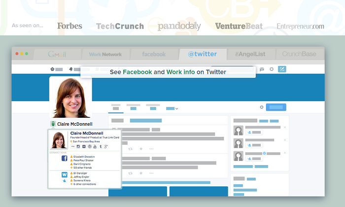 Discover.ly 整合其他渠道信息 在LinkedIn上查看个人资料时,你可能会错过其他社媒渠道的信息。Discover.ly可以整合其他渠道用户资料信息,帮助你查看有可能被遗漏的重要信息。它是一个智能的Chrome扩展程序,安装完成后在用户的个人资料上,你将会看到一个绿色图标,为你提供他们的Facebook和Twitter相关资料和数据,这些附加数据可以有效地帮你识别潜在用户是否与你的业务相关。
