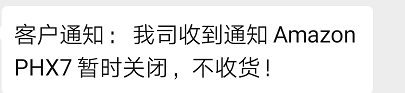 今日,有货代开始向客户发布通知表示:亚马逊PHX7仓库暂时关闭,不接收货物。