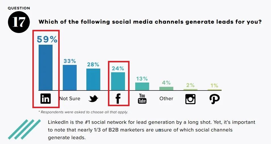 如果我们进一步看DEMANDWAVE发布的B2B数字营销报告不难发现,尽管用户在LinkedIn花费的时间不如在Facebook上那么多,但相对于其他社媒平台引流效果更好,且平台用户多为公司管理层或高层,既有决策能力也有购买意愿,整体销售转化表现更好。