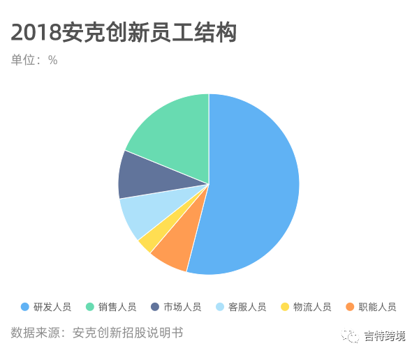 从“单一品类、单一品牌”转向“多元品类、多元品牌”,Anker始终将研发新的智能产品和创新升级原有产品视为重任。在Anker的员工结构中,研发人员占比超过一半。