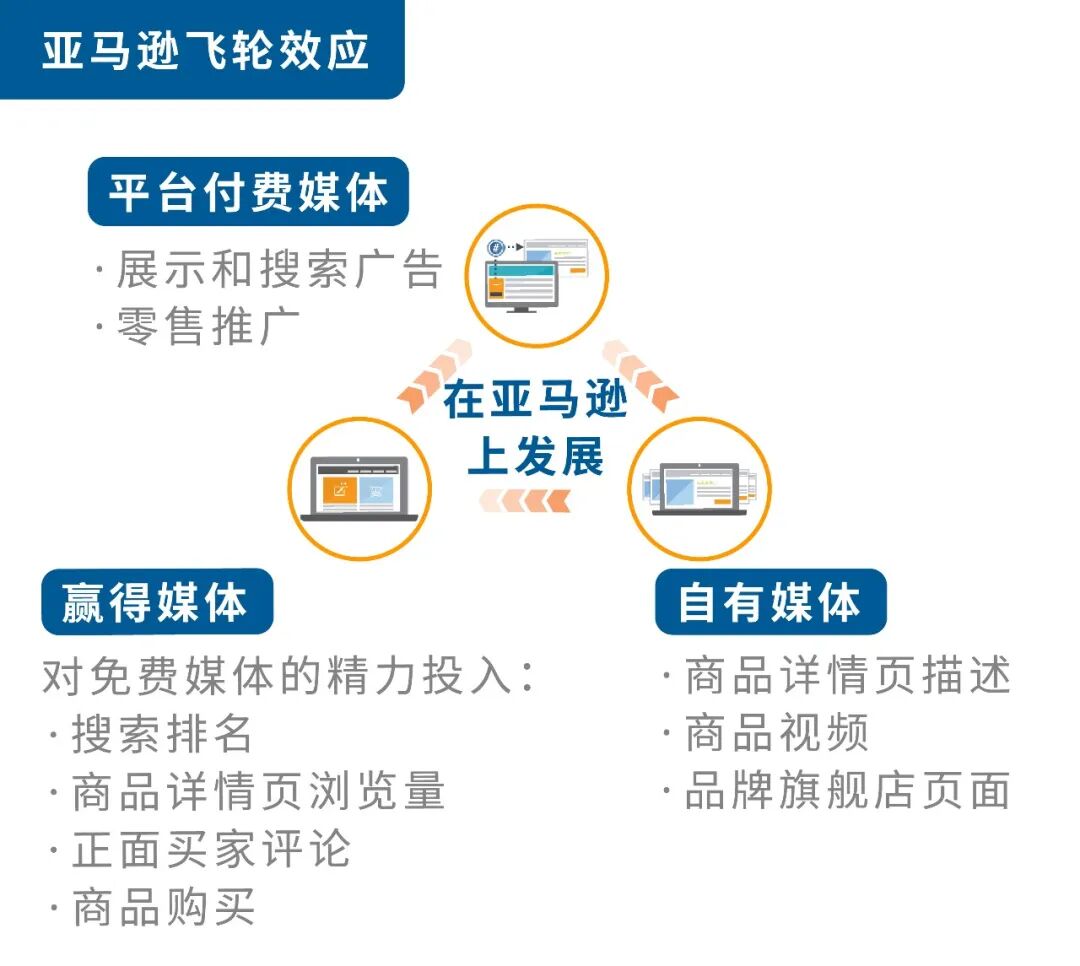 矩阵中这些付费的媒体,能帮助你进一步发展、优化你的自有商品展示平台(如商品详情页,还有针对品牌卖家独有的品牌旗舰店页面等),而优质的自有商品展示平台,又能为你带来搜索排名的提高、更多的流量、更优质的买家评论以及更高的销量,你的推广,将能实现闭环!