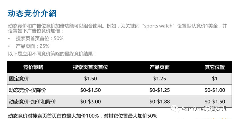 注意:动态竞价对搜索结果首页首位最大加价100%,对其他位置最大加价50%