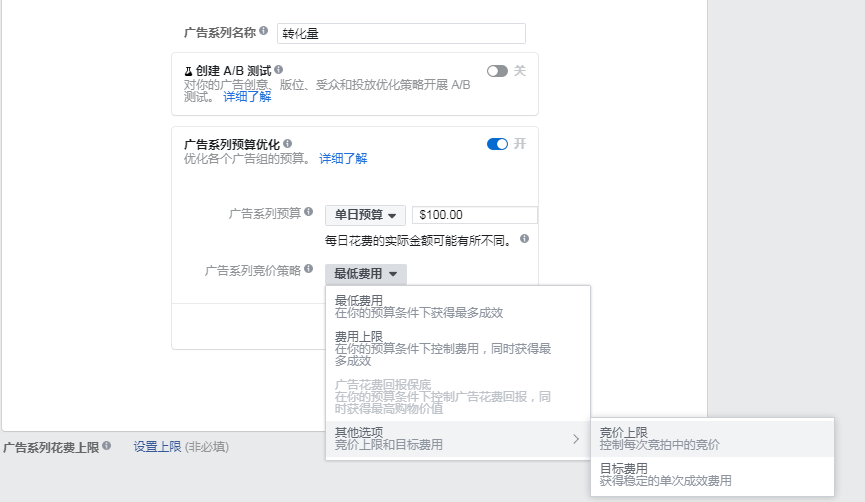 需要设置预算,并且设置出价,即您愿意为每次成效支付的最大金额。如果使用这类竞价,我们会尝试以等于或低于竞价的费用帮助您获得尽可能多的成效。系统会优先帮助您获得最优质的用户,然后当最优质的的用户跑完之后,再找不是那么优质的用户,同时尽量使费用低于设置的平均金额。