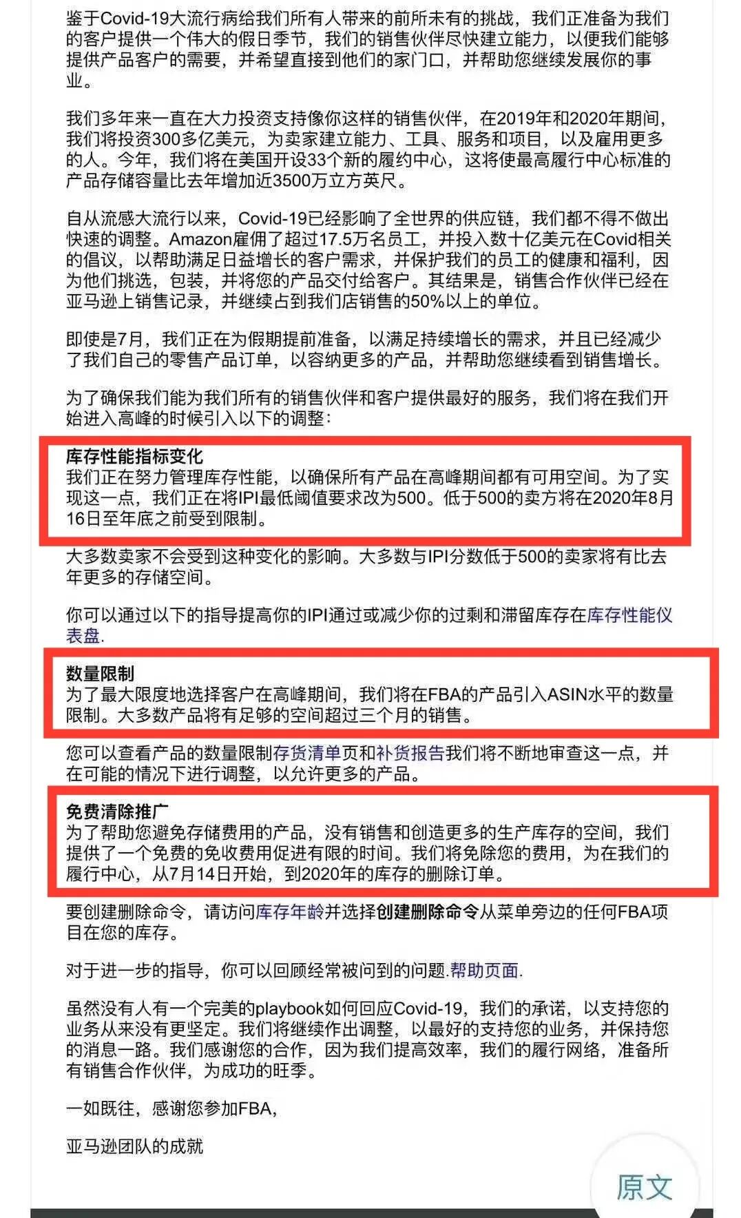 今天晚上堪称亚马逊卖家的鬼哭狼嚎之夜! 亚马逊美国站毫无征兆限制卖家补货,并且表示,从2020年8月16日至今年年底,库存绩效指标分数低于500的卖家将会有仓储限制,所以现在亚马逊是根据销量和库存推出限制措施,许多亚马逊卖家表示,这样新品也基本凉凉了。 亚马逊公告称,要提前为假日季做好准备,以满足持续增长的需求。亚马逊已减少了自己的零售产品订单,以容纳更多的卖家商品,帮助卖家继续提高销量。为确保给销售伙伴和顾客提供最好的服务,亚马逊将在进入高峰期前做出以下调整: 库存性能指标变化 亚马逊正在努力管理库存性能,以确保所有商品在旺季期间都有可用的仓储空间。为了达成这个目标,平台将库存绩效指标分数的下限要求调整为 500。从 2020 年 8 月 16 日至今年年底, 分数低于 500 的卖家将会有仓储限制。 大多数卖家将不会受到此次变更的影响。相比去年而言,库存绩效指标分数低于 500 的多数卖家将拥有更多的仓储空间。 商品数量限制 为了在旺季期间为顾客提供尽可能多的选品,平台将对亚马逊物流商品实施 ASIN 级别的数量限制。多数商品将有足够的仓储空间,可用于 3 个月以上的商品销售。 卖家可以在补充库存页面和补货报告中查看自己的商品数量限制。平台会持续对此进行审核,如有可能,平台会进行调整,增加卖家可以存储的商品数量。 免费清除推广 为了帮助卖家避免存储费用的产品,没有销售和创造更多的库存空间,亚马逊提供了一个免费的免收费用促进有限空间。自 2020 年 7 月 14 日起,对于卖家存放在亚马逊运营中心内的库存提交的任何移除订单,平台将免除卖家的移除费用。 这个公告一出来,小编的朋友圈几乎沦陷,卖家们一片哀嚎。 “限制补货就算了,还把绩效限制在500,真的不让我们活了。” “一年限制两次发货,这次限半年,提前祝大家圣诞节快乐,我原地爆炸了。” “亚马逊这是要搞垮中国卖家吗?太绝望了!” 对此,有亚马逊卖家在群里表示自己在6月26日就给过运营通知让大家迅速发货,因为美国FBA情况早已经不容乐观。 “受美国疫情爆发迎来二次高峰期,现在确诊人数太高了,FBA的运转持续受到了冲击,很多预约入库的时间都安排到了7月底乃至8月初去了。原本约好的货件入仓也会被改,而且很多仓库不给POD,避免纸张接触,需要后面邮件联系,但有时也得不到回复。” “大量原本直接送去FBA的货柜因为预约时间延误,导致底盘车架被占用,无法归还,导致刚到港的货柜没有底盘车架使用,货柜不能及时拉出码头,只能滞留港口或堆场,现在码头拥挤,严重影响中转速度。” 除此之外,现在亚马逊分仓也十分严重,前几日,亚马逊卖家被莫名分仓后,被亚马逊收取了1300刀的“亚马逊物流库存放置服务费”。 现在美国疫情持续升级,亚马逊爆仓严重,末端派送延误,亚马逊又再次限制发货,卖家们一定要提前为假日季做好物流准备,欧洲站卖家也建议提前建单,有备无患。