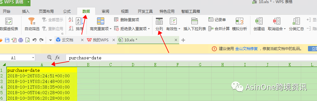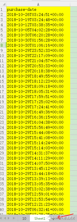 3:我们主要目的是 “purchase-date”这项,里面包含了日期和具体的时间,我们要将它们提取出来,来分析我们的最佳LD投放时间,建议将该项复制出来到另一个sheet中,方便我们更好的提取。