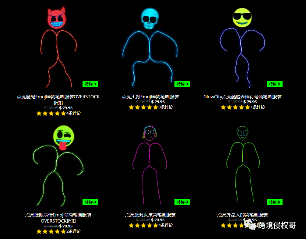 这些发光面具包含许多不同的样式,包括表情符号面具,EL线罩等等,还能搭配发光的火柴人服装组成一套独特的装饰!