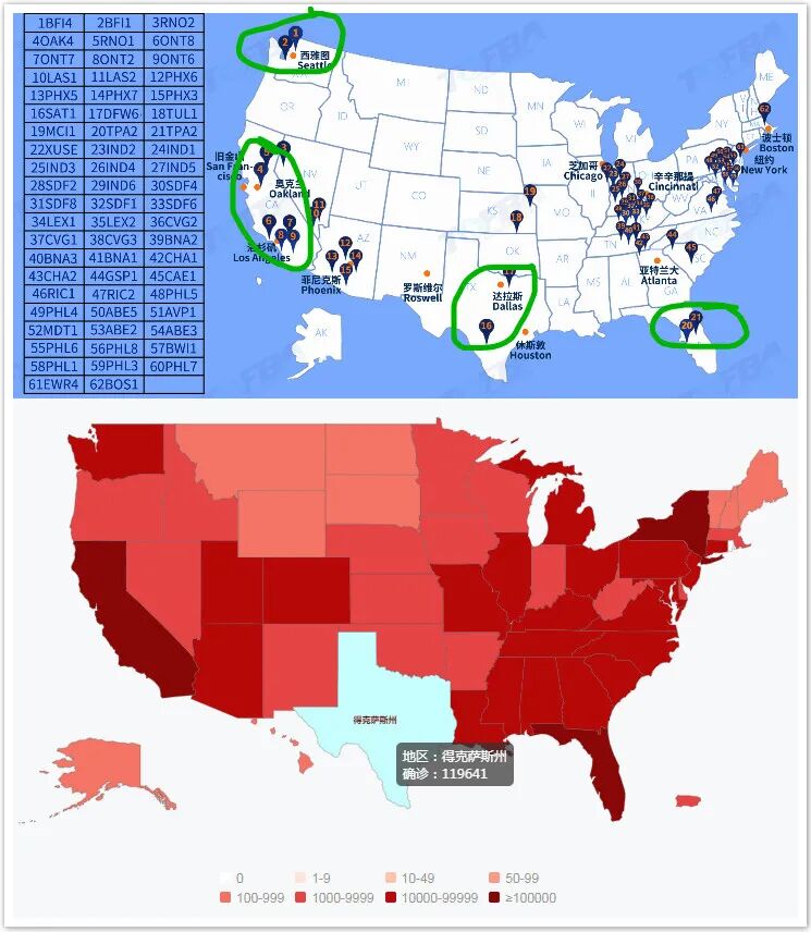 截止目前为止,美国新冠肺炎超308万例,疫情蔓延已经再度恶化! 据美媒报道,过去七天,美国平均每日新增确诊病例超5.2万例,较一周前增长20.3%。近几天,亚利桑那州、加利福尼亚州、佛罗里达州和得克萨斯州的新增病例占美国新增病例的近一半。 (图片来源:约翰斯-霍普金斯大学截图) 在此之前,美国各州经济已经逐步重启开放,但如今美国正重启封锁,各州再度暂停或取消重新开放的计划。 更为担忧的是美国政府对疫情情况充耳不闻,一再淡化疫情风险,夸大美国的准备和应对能力,没有采取有效措施,导致疫情仍处于“失控”状态。 亚马逊重要仓库遭殃,卡车派送拥堵严重 据了解,现在疫情中心开始从美东蔓延到美西,大量运输交通无法保证时效而拒绝接收货物,空运、海运和铁路派送都成为难题,货物滞留严重,周转出现较为严重的问题。 有卖家在群里爆料表示,现在疫情较为严重的西南部的CA(加利福尼亚州)和TX(德克萨斯州),有不少是亚马逊的重点仓库,现在卡车派送到亚马逊进仓需要等待10小时以上,每个卡车司机成本增加2000美元。 (图片来源:百度,仅供参考) 为了帮助卖家更好的了解目前的情况,小编特别将美国亚马逊仓库分布图和美国疫情图进行了比较和标注,我们可以看见,美国得克萨斯州、加利福尼亚州、佛罗里达州和华盛顿州是目前疫情比较严重的地区,这里都分布着不少亚马逊重要仓库。 (图片来源:朋友圈截图) 其中,备受卖家关注的ONT8仓库就位于疫情严重的加利福尼亚州,根据深圳某FBA空派物流商分享的视频来看,现在ONT8仓库开车派送拥堵排队严重,一眼望不到尽头。 (图片来源:深圳物流商分享) UPS近40位员工确诊新冠,尾程派送更难了 除此之外,更让卖家感到绝望的是,洛杉矶多家UPS被曝员工确诊,整个跨境电商圈都在惊呼“UPS这下真的算是废了,派送雪上加霜”。 根据洛杉矶公共卫生部门官网公布的新冠病毒的最新资讯,多个UPS员工被爆出确诊新冠状病毒,总计人数即将逼近40人,这种情况对UPS影响几何,大家可以自己感受。 (图片来源:洛杉矶公共卫生部门官网) 从杉矶公共卫生部门官网公布的数据可以看见,UPS出现确诊的主要地点是UPS - Bell、UPS - Cerritos、UPS - Main St、UPS - San Fernando和UPS - San Gabriel,确诊人数分别为4人、12人、9人、7人和7人。 对此,某物流商说道:“美现线头程海运7月继续堪忧,FBA预约进仓任在持久等待,海外仓发货尾程运力所在不堪重负,面对反弹的疫情,尾程运力还在继续恶化。” “未来UPS和FedEx都会受到更大的影响,目前美西FBA头程已经开始再次上调空运价格。”有物流商就此补充道。 这就是目前的现状,不管是美国还是欧洲都面临着巨大的物流难题。海陆空三大渠道的业务物流商的延误通知已经铺天盖地的发出了,总结一下大概就是:预约难、上架慢、派送迟和卡派特别堵,请各位卖家们体谅。 很多卖家也曾反馈,海卡进仓,亚马逊上架特别慢,建议避开卡车预约,可以发海运+快递。 现在时效大约会延误10天左右,卖家们一定要增加自己的备货周期,这两个月减少在疫情严重的仓库建仓(如洛杉矶),芝加哥和美东部分区域亚马逊仓库情况还算较好,大家可以选择从芝加哥和纽约上岸的美东仓库备货。 现在卖家们几乎是骂声一片,面对着这种情况也十分无奈和焦虑,对此,一定要做好心态调整,期望欧美国家疫情和暴乱早点结束,共同度过难关。