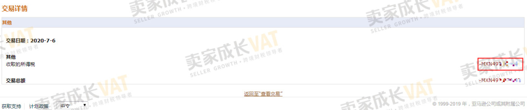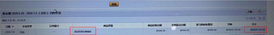 对上传RFC税号证书的卖家,亚马逊平台退还了预扣的增值税。