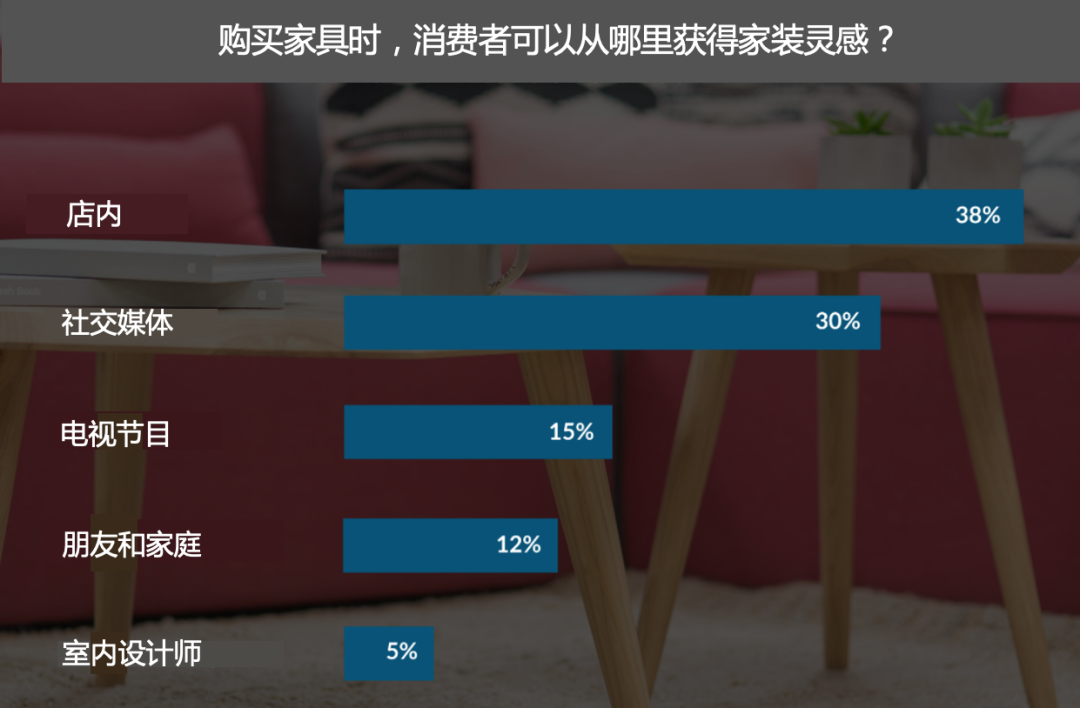 2020年家具品类的最新流行趋势主要集中在产品的环保安全性、多功能性上。此外,消费者可以从实体家具店内获得有关家装的灵感[6]。除此之外,还可从社交媒体,如Facebook、Instagram、Snapchat、Twitter等;家具相关的网站,如Nate & Jeremiah By Design等;家具展会,如High Point Market等地方获得家装的灵感。