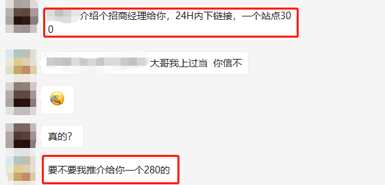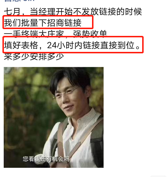 服务商表示自己是内部渠道,所以也不排除有些招商经理会卖链接。但很多经理发链接都比较慎重 ,因为这关系到他们的客户质量。