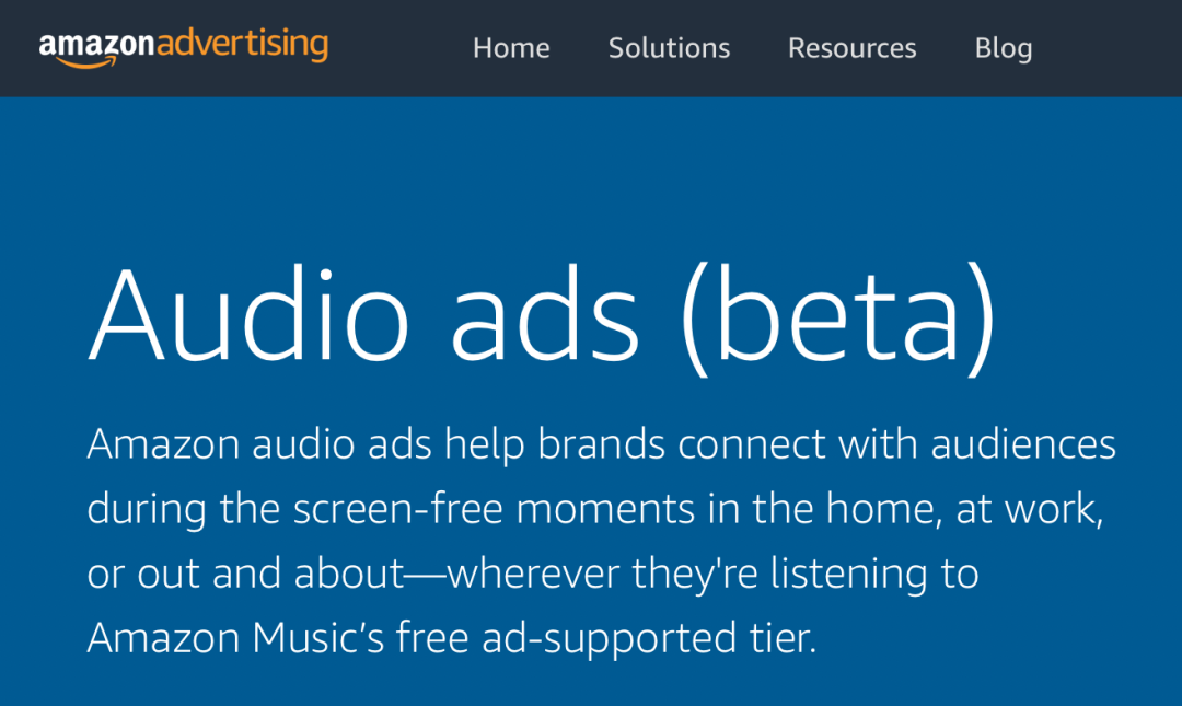 亚马逊音频广告可以看作是一种新形式的音频广播广告。亚马逊音频广告可帮助卖家通过在亚马逊音乐支持广告的套餐(Amazon Music ad-supported tier,这是亚马逊Echo设备上的默认音乐服务)内容中播放广告,这些广告会在暂停播放期间展示,能够覆盖支持 Alexa的设备(包括 Echo 和 Fire TV)以及移动设备和桌面设备上收听亚马逊音乐免费套餐内容的受众。