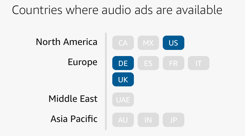 音频广告不仅仅面向亚马逊卖家。事实上,无论是否在亚马逊上销售商品,企业都可以购买音频广告。要使用音频广告,目前需要与亚马逊广告客户经理合作,美国站通常最低预算为 $25,000。广告按千次展现成本(CPM) 来收费。