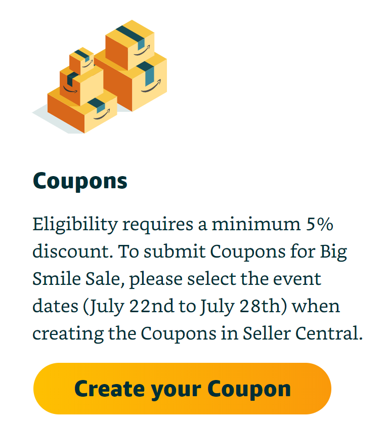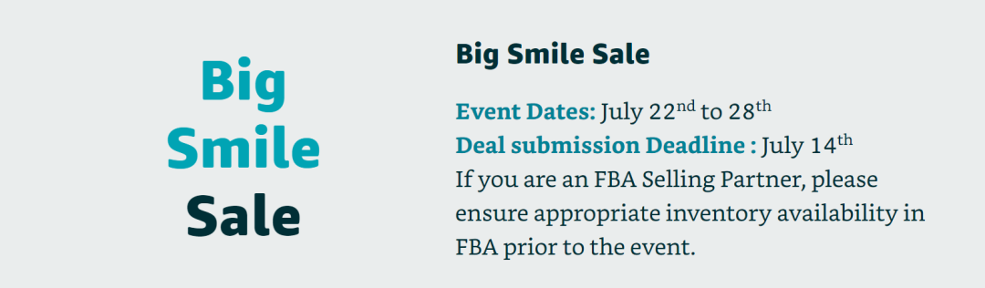 沙特Souq更名为亚马逊沙特站以来的第一个优惠活动——Big Smile Deal,为期一周(7月22日-7月28日),卖家申请参加截至时间为7月14日。 亚马逊提醒卖家:请在活动前确保库存充足。 本次特卖优惠活动,卖家可以选择2种优惠销售方式。 第一种:闪购(即将推出),即以超过15%的价格折扣促销,以数小时的倒计时形式向买家进行销售,在限定之间内的折扣模式。 第二种:优惠券,即资格要求最低5%的折扣。要提交Big Smile Sale优惠券,需要卖家在卖方中心创建优惠券时选择活动日期。 这是亚马逊沙特站正式更名以来的第一战,目前,亚马逊沙特站依然在吸引更多的卖家入驻,现在注册成为新卖家,并且在有限的时间内无需每月在Professional帐户上支付任何费用。 文章编者::中东跨境电商汇 欢迎转载,请注明出处