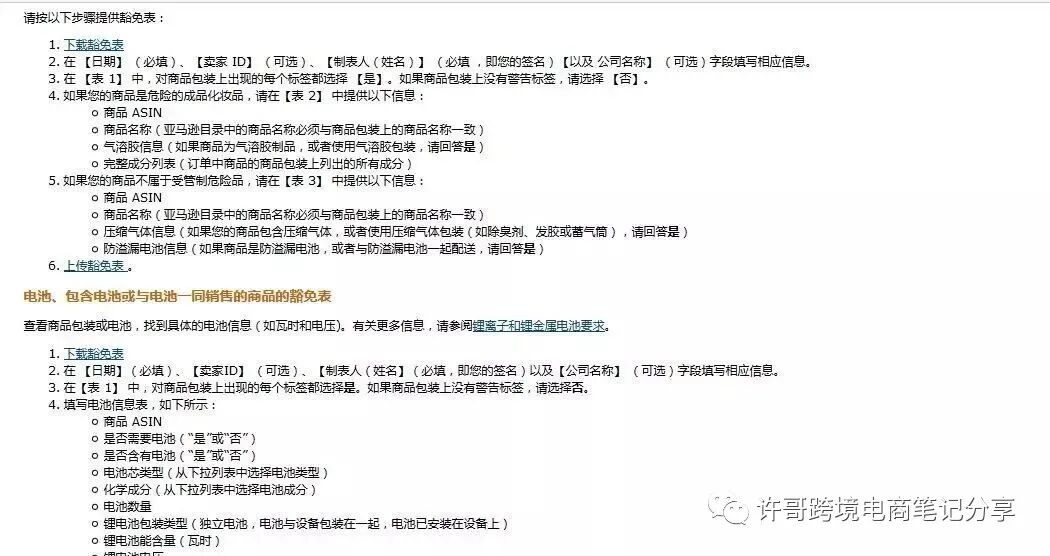 第二类是带电池的,内置,外置,需要配合电池的都算,不同类型,需要填写不同的电池类型的相关资料,还需要上传一份电池、包含电池或同一销售的商品的豁免表,上传的危险品文件,就是传说中的MSDS。才能够继续亚马逊物流后面的流程了。