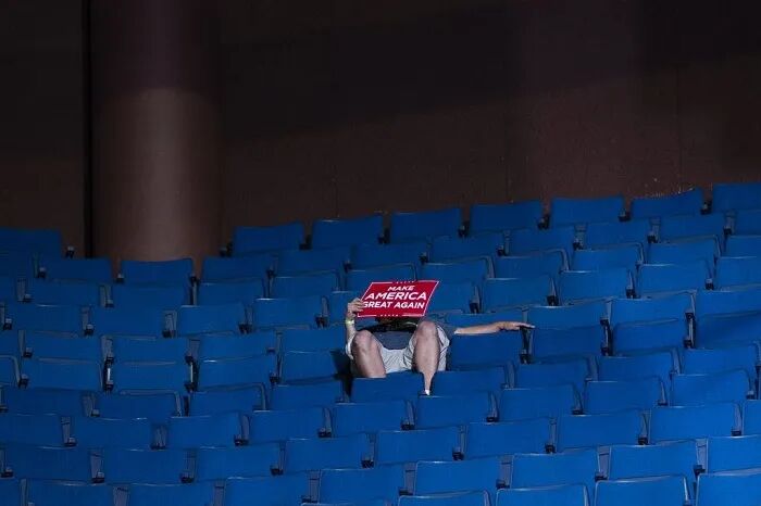 就在上周六,在美国疫情尚未平复的情况下,特朗普举办今年首场竞选集会,然而到场人数寥寥(现场如下图),这让在前期疯狂宣传活动盛况的总统被现场“打脸”。