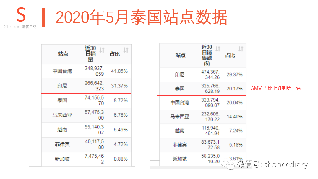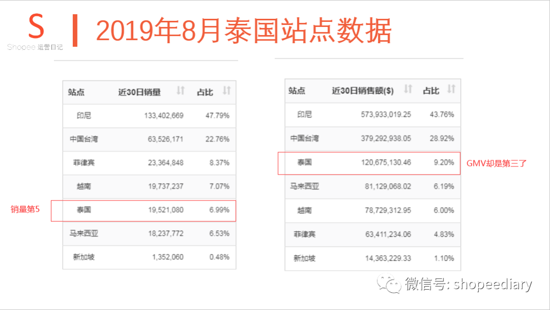 泰国的销量只有10%不到,GMV 也是20%。