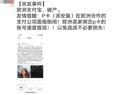 卖家的各种担心将P卡推向了舆论的风口浪尖,随后愈演愈烈,甚至有谣言称:P卡也要跟着Wirecard倒闭了......