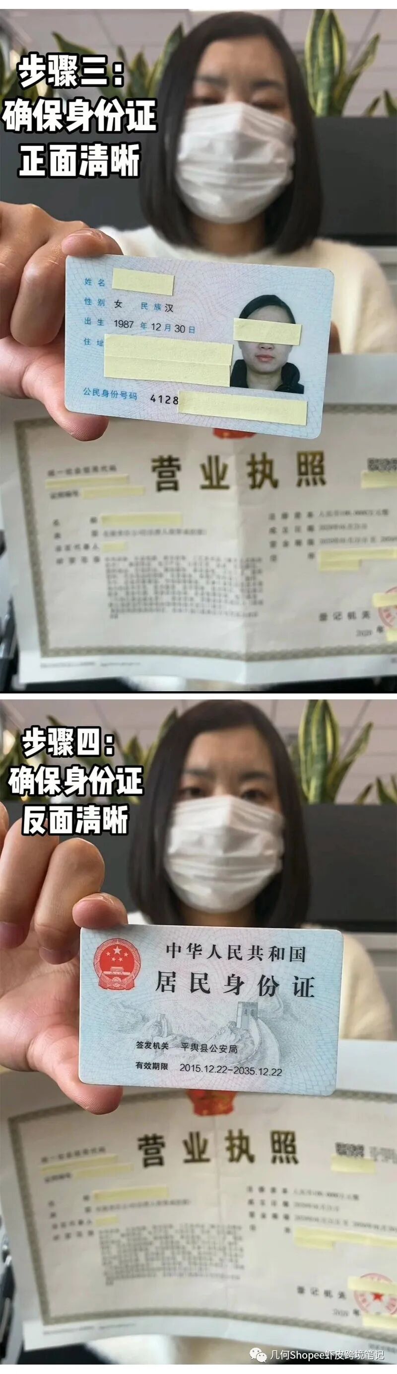 拍摄要求:卖家必须露全脸,营业执照及身份证必须展示清晰真实的证件信息,不许遮挡信息