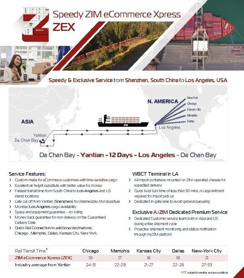 ZIM(以星轮船)是世界上最大的集装箱航运公司之一,这次开通的新航线英文全称是The New Speedy ZIM eCommerce Xpress (简称ZEX),新航线ZEX每周一挂靠大铲湾,始发港;深圳盐田,船期:六截三开 盐田(Yantian)---洛杉矶(LOSANGELES)12天到港,可由Losangeles转入:Glendale,AZ;Dallas,TX;Perris,CA等。 ZIM是专门为跨境电商海运货物量身定制的产品,通过优化起运港和目的港提货和还柜的作业流程,尽最大可能提升效率,满足跨境电商客户对于时效的需求。或将成为连接华南和美国洛杉矶、内陆市场的最快通道之一。 ●以星优势特点 ● 每周三盐田开船,周一到达洛杉矶,直航12天到港 到港后24小时内免预约提柜 能快速连接铁路通往美国其他目的地,例如:芝加哥、孟菲斯、达拉斯、堪萨斯和纽约 这次以星快船领先所有船公司一步,大胆创新成为了第一个吃螃蟹的。 01、对标美森,媲美空派 在以星之前,美森快船以其稳定的时效、12天到港的稳定航期颇受跨境卖家的欢迎,成为旺季补货的不二之选。 美森轮船于2006年2月就已经成功开辟了中国往返美国洛杉矶长滩港的快捷航线 (CLX) ,提供自宁波和上海到长滩的每周固定班轮服务, 该航线具有航行时间短从上海、宁波到美国洛杉矶港只需要11天,美西目的港卸船速度快以及船期准确等竞争优势。 美森以速度著称,Speedy,Punctual-严守时刻,ZIM的七伤拳打的是速度。 但广东地区,美森并没有直航到美国的航线,以往都是在广东集货后由国内的拖车或者物流零担送到上海或者宁波上船,这对于物流公司来说操作上很困难的,耗时耗费,对卖家来说也增加了相应的成本。现在以星快船直接可以在深圳装柜开船,操作快捷。 02、北有“美森”,南有“以星” 以星快船华南已开启首航,不少业内人士都在议论,此次ZIM快船对于中美航线之间的Matson快船服务到底会迎来多大的冲击? 毕竟目前整个中国的跨境电商至少半壁江山是在广东深圳,现在深圳有了直发美国的ZIM快船之后,对于华南卖家来说,时效和价格和美森媲美,没必要再舍近求远,费时费力把货物拖到华东去上船了。 ZIM快船服务的开通,打破了现有快船市场上美森一家独大的格局,对于丰富整个跨境电商物流渠道的多元化具有里程碑式的意义。随着跨境电商占据整个进出口贸易的份额不断提升,相信在不久的将来还会有更多的快船服务相继出现。 只要有需求的地方就有市场,有市场就会有竞争,需求带来竞争。腾讯和阿里竞争,百度的市值却下降了;可口可乐和百事可乐竞争,非常可乐却消失了;360和金山竞争,卡巴斯基没了..