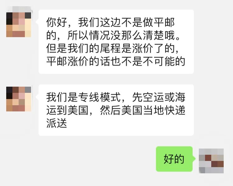 今日,有亚马逊卖家向小编爆料,他在货代总群里收到一则关于“7月1日起美国路向平台小包费用调整,起步价或涨到21.6元”的消息。与目前的小包价格相比,瞬间涨了2美金,挂号费也涨到了39元起,这对跨境卖家来说,又是一波巨大的打击。 (图片来源:卖家提供) 这则消息虽然真假未明,但昨日就已经在各大卖家交流群引发激烈的讨论,毕竟美国市场是亚马逊中国卖家的主要战场,平邮价格翻倍增加,卖家利润大幅度缩减,对销量也将产生不同程度的影响。 (图片来源:卖家群聊天截图) “今天看见很多人都在讨论这件事,如果这则涨价消息是真的,那只能先不做美国市场,已经以日韩欧为主了,希望不要再这样下去了,否则怎么活?”亚马逊卖家说道。 对此,小编也询问了许多货代,大家都有不同的看法,有人表示不清楚,也有人表示确实是有涨价的可能,某美国专线的货代认为平邮的具体情况没那么清楚,但他们的尾程是涨价了,所以平邮涨价也不是不可能的。 (图片来源:货代聊天截图) 深圳某物流公司工作人员也表示有所耳闻,美国路向平台费用涨价也是有可能或者有这个趋势,卖家们应该提前做好心理准备。 (图片来源:货代聊天截图) 现在卖家群里已经是一片哀嚎,大家纷纷开始为下个月运费涨价的事件做起心理准备,若情况属实那到时候会让更多的中小卖家陷入窘境,面临倒闭情况。 在这段时间,经历了跨境物流的各种伤痛,卖家们也都宁愿信其有,也不想信其无。在此,小编也建议卖家们不要过于焦虑,也有可能只是虚惊一场,我们也将持续跟踪报道最新消息。