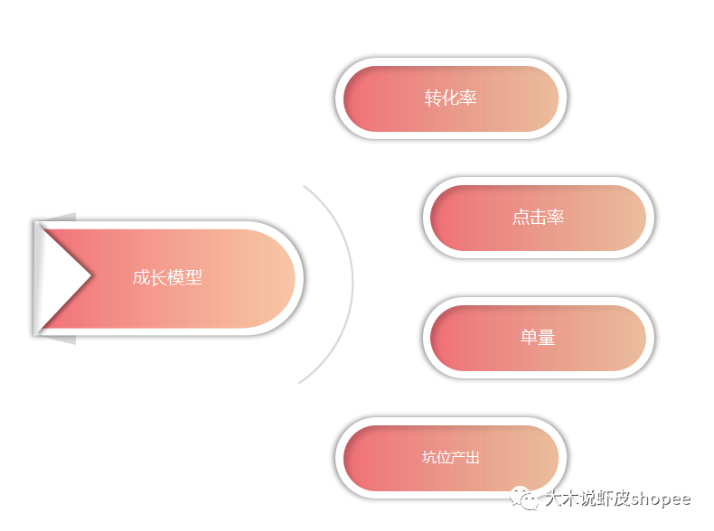 对月成长模块的产品,转化率是最最最重要的。一个成型的产品,不是单单考虑好不好看,而且能不能卖的出去,销量是多少,转化能力如何。shopee给你十万个展现,你能给他转化多少,承接多少用户。