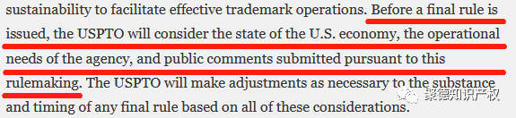 就在大家沉醉于这不足4月的减免福利时 美国商标局马上来搞事情了 毕竟,羊毛出在羊身上,大家都懂 2020年6月19日美国专利商标局就发布了官费上涨通知 费用上调公告 大意:美国专利商标局发布了规章制定通知,或将设置或增加某些商标费用。拟议的费用将进一步推动USPTO的战略目标:更好地使费用与成本相一致,保护商标注册的完整性,提高代理流程的效率,确保财务可持续性,以促进有效的商标运营。 官方的说法是CSPTO调整费用目的 是为了促进美国知识产权系得到足够的财政资源以便于有效管理 其实说白了就是闹灾猪肉都涨价了我能不涨? 官费上涨内容 1.商标注册申请费用 2.法令第8条、第71条规定的使用宣誓 3.请愿书费用 4.申请复议 5.美国商标复审、上诉委员会撤销和异议费用 6.TTAB上诉和审判费 对于根据§2.63(b)(3)提出的复议请求,在终审的发布日期后三个月内提出复议的需按照新的费用标准缴费(书面申请为500美元,通过TEAS或商标审判电子系统为400美元) 这不就相当于把之前免除的费用又给缴回来 甚至还涨了原有的30%以上 除了涨价,商标局还会加强注册各环节的审查和监管力度,抬高代理注册门槛 不得不说,小老弟你有点狠啊 但老铁们也别慌,这只是拟调整通知 据商标局统计,商标官方费用最早也是在2020年10月前生效 发布最终规则前,还会结合经济情况,运营需求和公众意见等进行调整 所以想要做商标注册的兄弟,眼下最要紧的就是赶在官费上涨抬门槛前,完成美国商标申请注册。眼下时间紧迫,面对一堆复杂繁琐的程序要做到快、准、狠,还是尽可能找到合适的商标代理注册机构吧。