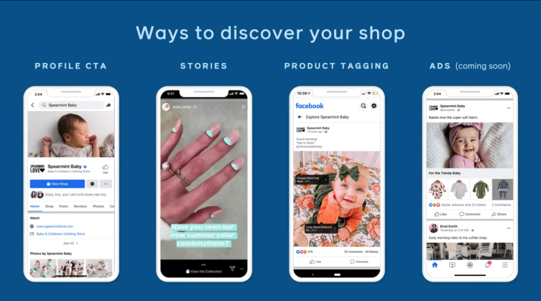 4)触达全球消费者——全球各地的线上消费者都可以快速且轻松的访问卖家的店铺,产品将通过Facebook Page、Instagram个人资料或Instagram story等多种方式触达消费者。