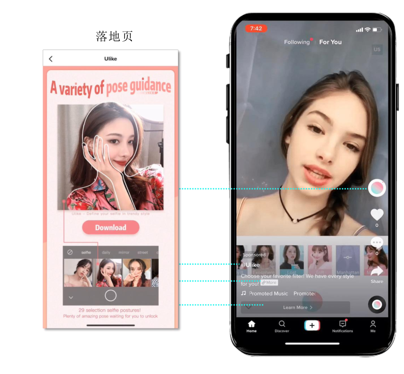 因为TikTok的广告投放直接链接到广告的产品页的(亚马逊,速卖通,lazada,独立站等)。
