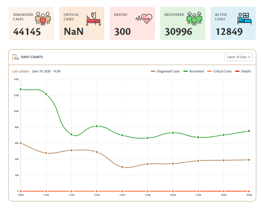 阿联酋卫生与预防部6月19日报告了393例新病例,以及755例新康复病例。这使阿联酋的恢复总数达到30,996。同时也宣布2例死亡,使死亡人数达到300。