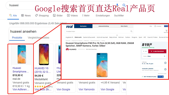 real与GoogleShopping平台达成合作,付费为平台商品做搜索优化,从Google首页直接搜索到Real商品页。商家入驻Real平台,可免费享受Google Shopping前排付费流量,比自然流量触达人群更多,给新用户留下深刻印象,增加品牌曝光率,扩大品牌认知度,推广效果更佳。