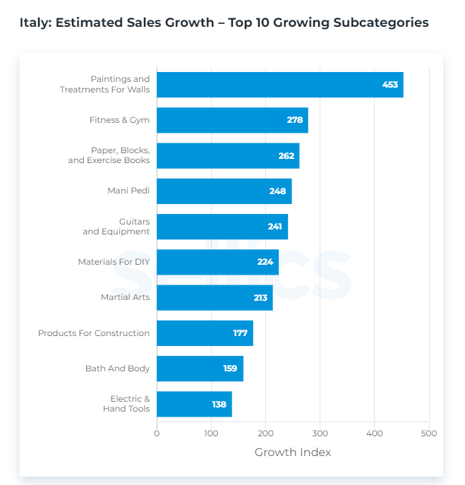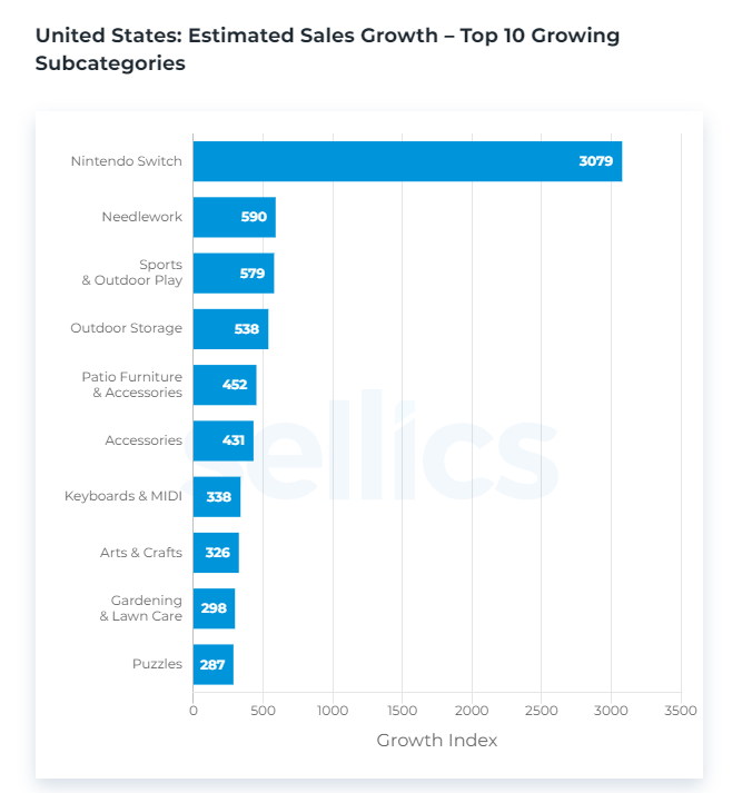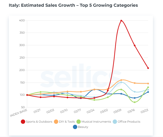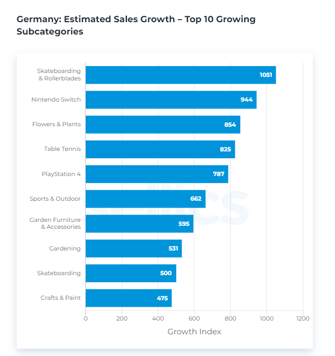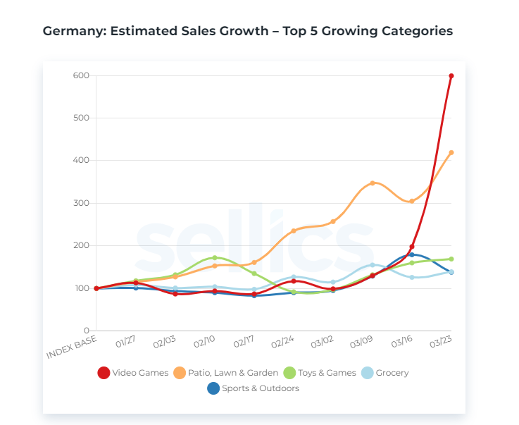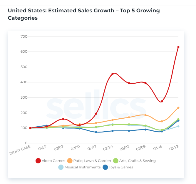 受疫情的影响,亚马逊平台上的消费趋势发生了很大的变化。疫情爆发后,很多国家实行了居家令,亚马逊限制入仓产品(近期已解除),很多产品都出现了库存不足和物流延迟的问题。因为疫情,人们日常生活发生了改变,消费行为也自然而然发生了变化。一些品类增速迅猛,以下是2月至3月亚马逊三个站点上销售额增长最多的5个品类:视频游戏、庭院&草坪&花园、艺术&手工艺&缝纫、乐器、玩具&游戏是美国站增长最多的五个品类。视频游戏、庭院&草坪&花园、玩具&游戏、食杂、运动&户外是德国站销售额增长最多的五个品类。运动&户外、DIY&工具、乐器、办公用品、美容用品是意大利站站销售额增长最多的五个品类。健康&家居(Health & Household)——美国站-18%,德国站-8%,意大利站-28%。截止3月底,意大利消费者对该品类的购买一直保持不变,之后可能会恢复到稳定水平。美国市场上,这个品类在2月份一直稳定增长,在3月第二周达到购买高峰,随后略有下降。德国市场的消费趋势与美国类似。杂货&美食(Grocery & Gourmet Food)——美国站+5%,德国站+30%。在2月底和3月第二周,美国站和德国站这个品类增长最快。由于意大利站上的食品选择有限,未能看到需求增长的趋势。意大利人通常更愿意从杂货店购买食物,而且不是网购。庭院&草坪&花园(Patio, Lawn & Garden)——美国站+133%,德国站319%,意大利站-4%。意大利站上这个品类没有大幅增长,这可能和需求有关。美国站和德国站则能看到需求明显增加。视频游戏(Video Games)——美国站+531%,德国站+499%。由于意大利并不流行玩视频游戏,所以这个品类在意大利没有显著增长。在德国和美国,由于宅在家里,游戏成了大多数人解闷的途径,销量突飞猛进。运动&户外(Sports & Outdoors )——德国站+38%,意大利站+108%。意大利站这个品类增长比较明显,尤其是在3月第二周增长达到299%。预计德国站和美国站这个品类会保持增长势头。DIY&工具(DIY & Tools)——意大利站+46%。人们在家呆得越久,就会花更多时间改造屋子,提升品质。办公用品(Office Products)——意大利站+21%。玩具&游戏(Toys & Games)——美国站+49%,德国站+69%。艺术&手工艺&缝纫(Arts; Crafts & Sewing)——美国站+58%。乐器(Musical Instruments)——美国站+11%,意大利站+31%。美国人对电子游戏的热爱,让任天堂Switch的销售额大幅增长,自年初以来增长了2979%!户外存储(Outdoor Storage)、庭院家居&配饰(Patio Furniture & Accessories)、和园艺&草坪护理(Gardening & Lawn Care)的增长率在198%到438%之间,美国消费者在疫情期间致力于改善自己的庭院环境。因为疫情大家都呆在家里,不能进行户外活动,所以很多人选择购买DIY产品自娱自乐。乐器的销量也在增长。其他室内娱乐活动,如拼图的购买量增长了187%。德国消费者对任天堂Switch也是情有独钟,销售额增长了844%。PS4页表现出色,增长了687%。预计下一波游戏娱乐支出增长将出现在圣诞节前。和美国消费者一样,德国人也在通过制作手工艺品来娱乐自己,销售额都在大幅增长。园艺家居&配饰增长了495%,花卉&植物增长了754%。德国市场,运动&户外用品仍然保持强劲的增长趋势,比如滑板(Skateboarding)销售额增长了400%,滑板&旱冰增长了951%,这也可能是因为德国政府不建议乘坐公共交通工具而引起的销量增长。另外乒乓球的销售额增长了725%,它占地面积小,在室内或者庭院里都可以玩耍。墙面涂料&处理(Paintings And Treatments For Walls)、DIY材料、建筑产品、电动&手动工具的增长趋势表明,家居装饰是今年意大利最强劲的消费者趋势之一。美容护理产品在意大利十分热销,修剪指甲产品的销售额增长了148%,Bath & Body增长了59%。以上就是疫情期间,销售额明显增长的一些品类,希望能给卖家提供一些启示,抓住机会提高自己的销量。