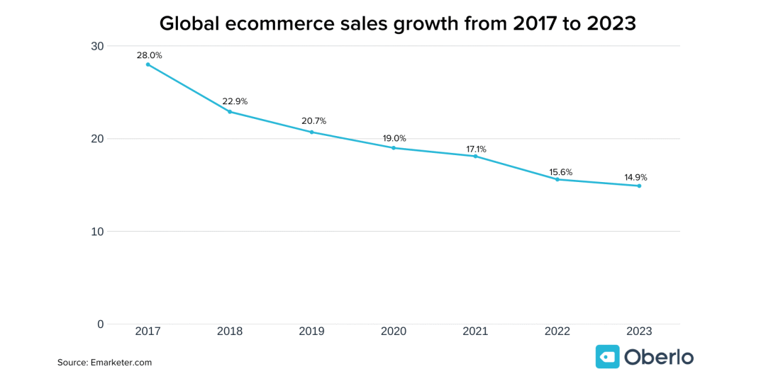 数据证明,全球的电商市场在近年来已经显现出了增速放缓的趋势。