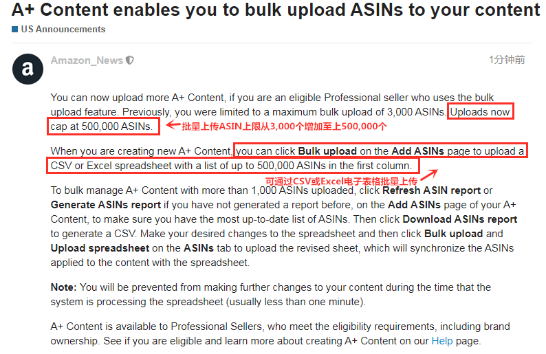 据外媒消息称,亚马逊或将被欧盟正式提起反垄断指控。船长获悉,为提高在线平台的公平性和透明度,去年欧盟委员会出台了《欧盟商业平台(P2B)条例》(下文简称 “P2B法规”)。这项法规主要是为了让电子商务市场、应用程序商店、商业社交媒体等能够更加公平透明,以杜绝科技巨头利用自身的优势进行一些不公平的商业行为。 “P2B法规”将于今年7月12日开始实施。 (图/欧盟委员会) “P2B法规”主要包含以下两方面内容: 数字平台在没有明确原因的情况下不能随意暂停或终止卖家的账户,更改条款和条件时,至少需要提前15天发出通知,以便公司适应。也就是说如果平台要进行封号或者更改某些条款时,要提前15天通知卖家。 市场和搜索引擎需要披露他们用来对网站上的商品和服务进行排名的主要参数,以帮助卖家,他们还必须披露他们收集的数据以及如何使用这些数据。 此外,船长了解到,其实去年亚马逊曾与德国反垄断监管机构达成一项协议,亚马逊在暂停卖家账户时必须提前30天发出通知,并附上警告和原因说明。不过,据该协议达成以来,有很多被封号的卖家表示,并没有提前收到通知。 二 卖家收到亚马逊发送的道歉信 这段时间,船长收到很多卖家反馈,账号无故因为关联问题被亚马逊封停,上周在船长分享的文章中也有提到该情况。 目前,亚马逊的最新回应来了,大批被封店的卖家陆续收到亚马逊发送的致歉邮件,例如下面这位日本站卖家: (图/日本站一卖家收到的邮件) 邮件内容显示,亚马逊向这些被误封的卖家表达了歉意,重新审核了卖家提交的信息,并重新激活了其账户。 对于亚马逊误封卖家的情况,可能很多卖家已经见怪不怪了,被“冤枉”惯了,销售业务也因此受到影响。不过,也有卖家表示理解,希望亚马逊系统和机器能够优化好,给卖家营造一个良好的销售环境。 三 亚马逊日本站货件将延迟入库 6月16日,亚马逊日本站发布公告称,因入库交货数量高于预期,货件的入库将延迟。 受影响的运营中心有: 堺亚马逊运营中心 (KIX1) 多治見亚马逊运营中心(NGO2) 市川亚马逊运营中心(NRT1) 京田辺亚马逊运营中心(KIX5) 小田原亚马逊运营中心(FSZ1) 高槻亚马逊运营中心(TPF3) 船长注意到,除了日本站,最近其他站点的很多卖家也出现了上架缓慢的情况,其中有部分仓库时效特别不稳定,有卖家一个月了才接收。 (图/卖家社区) 四 亚马逊土耳其站开放自注册通道 相信应该有不少卖家已经发现了,亚马逊土耳其站开放了自注册通道。船长也注意到,在土耳其卖家服务平台官网,一共有两个注册入口。如下图所示: (图/亚马逊) 第一个入口是单独在土耳其站销售,应该是只支持土耳其当地的卖家/供应商注册,并可享受0里拉限时优惠服务(卖家无需支付每月99土耳其里拉+增值税的月租费)。 (图/亚马逊) 注:自2018年1月15日起,所有注册的卖家/供应商将自动利用此优惠机会。此优惠在有限的时间内有效,亚马逊保留更改或取消优惠的权利,该权利将提前3个月宣布。 第二个入口是通过欧洲站在土耳其销售,很可能是连接卖家现有的欧洲站账户。对于在6月30日之前注册并且满足条件的卖家,还有获得免除6个月的月租费的机会(具体以官方信息为准)。 (图/亚马逊) 注:是否接受中国卖家注册,目前官方尚未说明,因此,船长建议有兴趣的卖家最好先调研土耳其市场,再考虑后续的注册事宜。 五 所有专业卖家将自动注册预付退货标签计划 6月15日,亚马逊发布公告表示,作为改进退货流程的努力的一部分,将把亚马逊的预付退货标签计划推广到所有的卖家。作为亚马逊销售政策的一部分,从2020年6月15日起,专业卖家将被自动注册。 (图/亚马逊卖家论坛) 通过预付退货标签计划,亚马逊会自动授权退货政策范围内的所有退货,并代表你向客户提供预付退货运输标签。亚马逊仅通过向你发送不符合亚马逊政策或无需人工审查的请求来减少你的处理时间。 六 A+ Content允许批量上传更多的ASIN 6月16日,亚马逊在美国站和欧洲站相继更新了一项新利好的功能消息,卖家现在可以上传更多的A+内容。以前,只能批量上传3,000个ASIN;现在,上传上限为500,000个ASIN。 (图/亚马逊卖家论坛) 操作提示 创建新的A +内容时:可以在“ Add ASINs (添加ASIN)”页面上单击“Bulk upload( 批量上传) ”,以上传CSV或Excel电子表格,并在第一列中列出最多500,000个ASIN。 批量管理已上传了1,000多个ASIN的A +内容:请在A +内容的“ Add ASINs (添加ASIN)”页面上,单击“ Refresh ASIN report(刷新ASIN报告)”或如果尚未生成报告,则生成生成ASIN报告,以确保你拥有最新的ASIN的日期列表。 然后点击“Download ASINs report(下载ASIN报告)”,以生成CSV。对电子表格进行所需的更改,在“ ASIN”标签上单击“ Bulk upload( 批量上传) ”和“ Upload spreadsheet (上传电子表格) ” 以上传修改后的工作表,这会将同步应用到于内容的ASIN与电子表格。 注意:符合资格要求(包括品牌授权)的专业卖家才可以使用A +内容。 七 Amazon Shipping为非亚马逊包裹开启新业务 近日,Amazon Shipping宣布,他们将对所有在线零售商开放业务,无论是否在亚马逊上销售,都可以使用其送货服务。 Amazon Shipping高级业务开发经理弗雷迪·科里里奇(Freddie Coleridge)在LinkedIn上发布了每周7天提货的服务,并表示: “企业可以使用Amazon Shipping来处理在亚马逊、自己的网站和其他电子商务渠道上的订单” (图/Linked