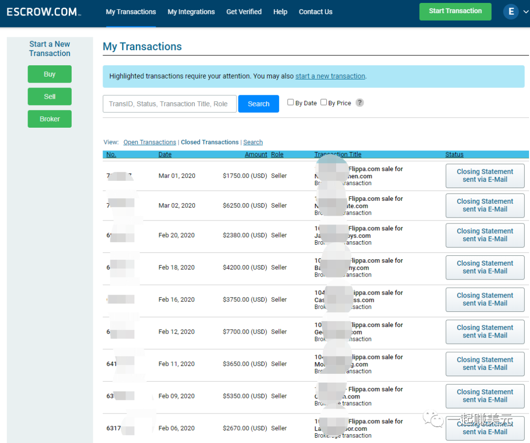 这是小A今年三月卖出网站的交易截屏(Escrow.com是Flippa的交易资金托管平台):