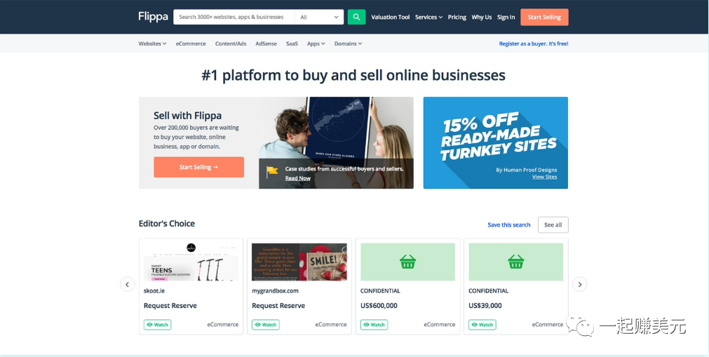 很多人可能没有听说过Flippa,Flippa是一个网站、域名、app交易的网站,可以说是全球最大的网站交易平台,有12万注册买家,月访问量190万,每天都有3000个以上的站点在上面出售。
