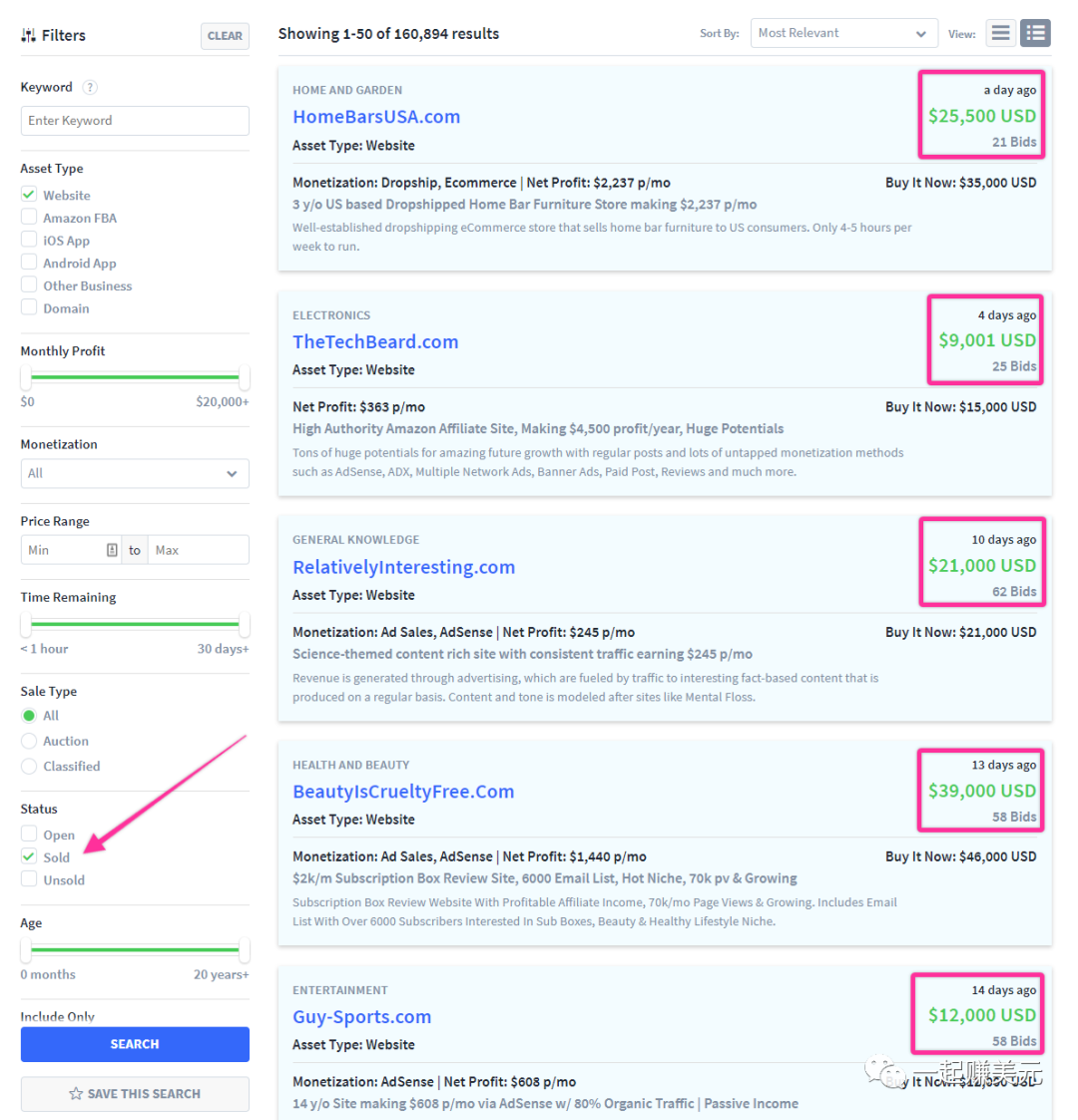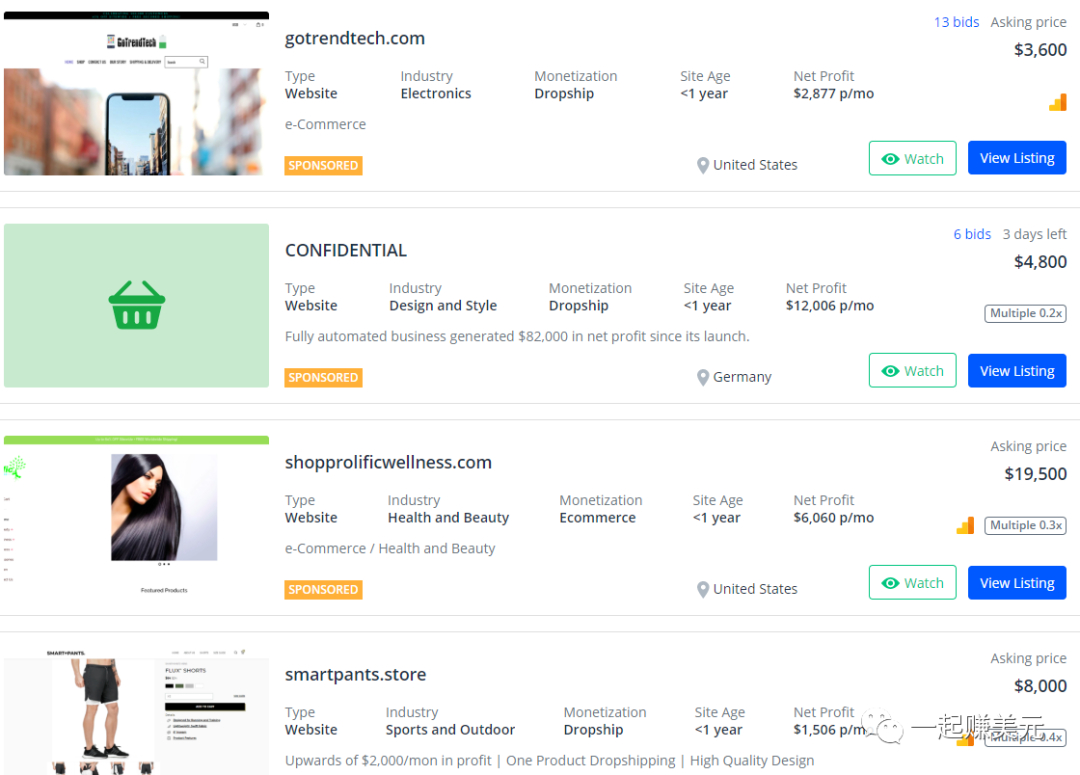 3、把网站建好后直接卖掉。(客单价两三百美元-数千美元不等,省时省力,利润高,缺点:市场小)