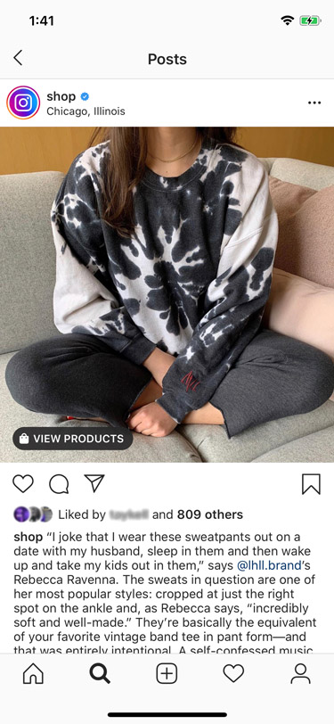 借助Instagram购物功能,商家可以让人们在疫情期间更轻松地购物。同时,商家还可以引导客户浏览与他们当前最相关的商品,向他们展示不同的购物方式,或邀请客户发帖分享他们最喜爱的商品,从而共同来打造购物体验。