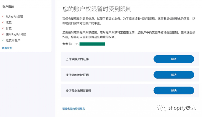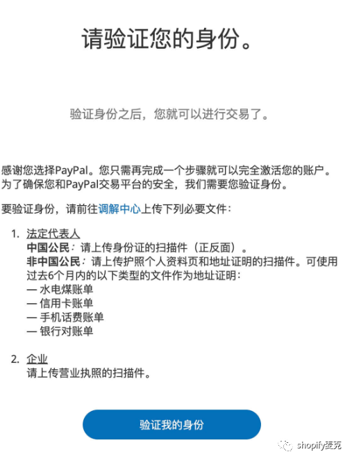 这不是PP的要求,而是shopify针对大陆卖家的一个强制性要求,PP必须是企业账户。