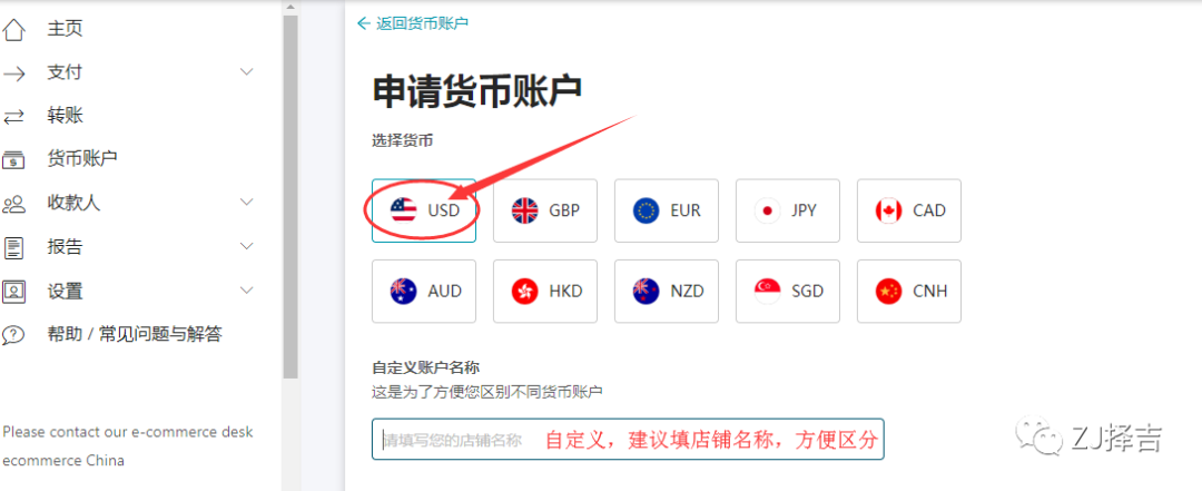 一个账户初始可申请5个美元账户,超过5个需要审核下发货币账户,因此有5个以上店铺需要绑定的,请先联系我们客服热线+864001203532申请相应数量美元账户