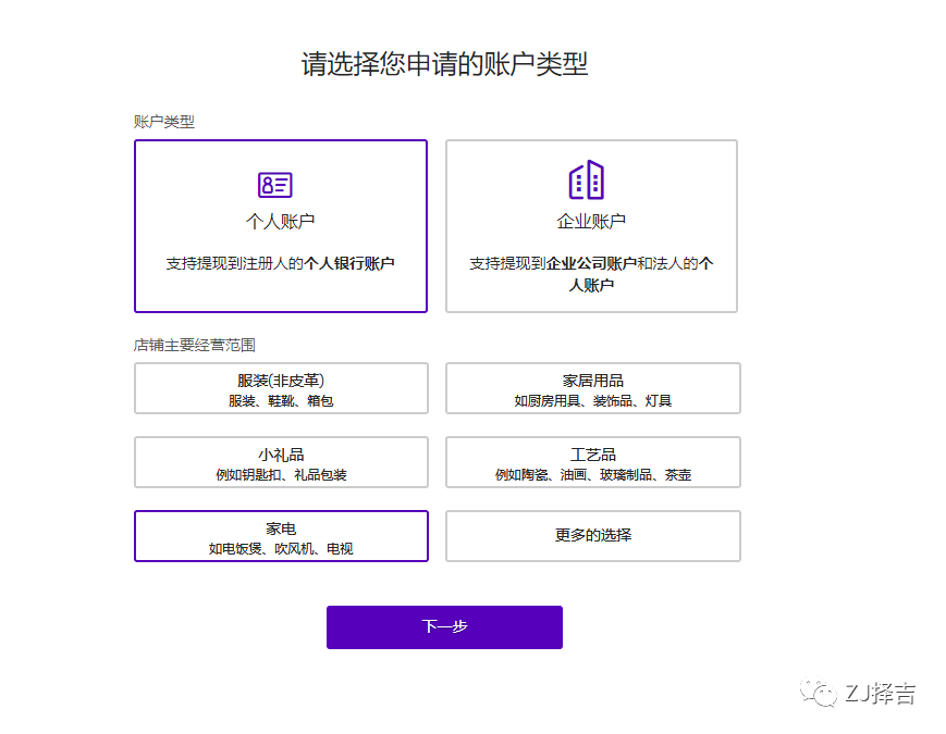 除需要提现到对公账户和提现美元到账外,建议注册个人账户。店铺主要经营范围任意选择一项即可