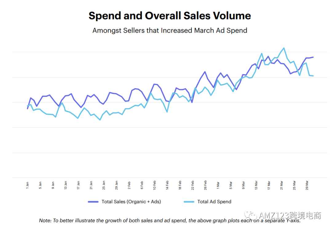 据了解,一半受访卖家在3月提高了广告支出,而且从下图中可以看出来,广告支出增长,销售额也随之增长。对于需求旺盛的产品,广告更容易推动销量大幅增长。